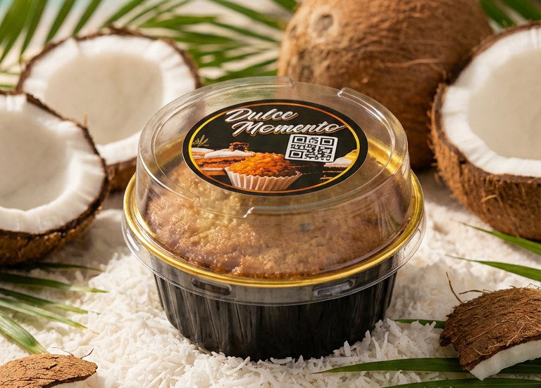 Nuestro dulce de coco horneado es una receta tradicional que evoca hogar y celebración. Elaborado con coco natural, un toque de canela y vainilla, huevos frescos y pasas jugosas, logra una textura húmeda y un sabor profundo que se derrite en la boca. Perfecto para acompañar café o compartir en familia.